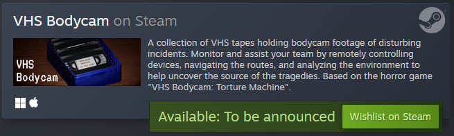 | Tags | bodycam, First-Person, Horror, Psychological Horror, Retro, torture, vhs, vhs-bodycam, vhs-bodycam-the-torture-machine |